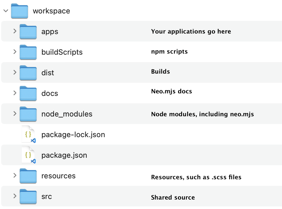 As you can see, a Neo.mjs workspace is a conventional npm package.